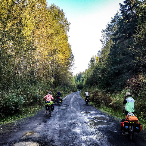 Nous avons une chance incroyable de partager ce bout de chemin à vélo avec Ben des États-Unis (Wisconsin), Dave et Vicky d’Australie. Ben est lui aussi en route pour la Patagonie depuis l’Alaska. Dave et Vicky, eux, sont partis en début d’année de San Francisco. Ils ont remontés le continent jusqu’en Alaska, et maintenant rebroussent chemin pour aller passer l’hiver sur l’ile de Vancouver. Nous nous sommes tous rencontré à Whitehorse. Plus tard, nous avons recroisé par hasard Ben à la jonction 37 de Watson Lake. On a ainsi commencé à faire la route avec ce grand bonhomme aux cheveux longs bouclés qui a un sens de l’humour détonnant ! À Dease Lake, c’est Dave et Vicky que nous retrouvons. Tous ensemble, rapidement et naturellement on devient une petite équipe d’inséparables et le chemin nous enseigne de nouvelles choses de la vie. Ce n'est pas tous les jours que l’on rencontre ses homonymes dans des contrées reculées et nous nous attachons très vite aux joies du partage à vélo après que notre voyage déjà, nous ait tant donné.